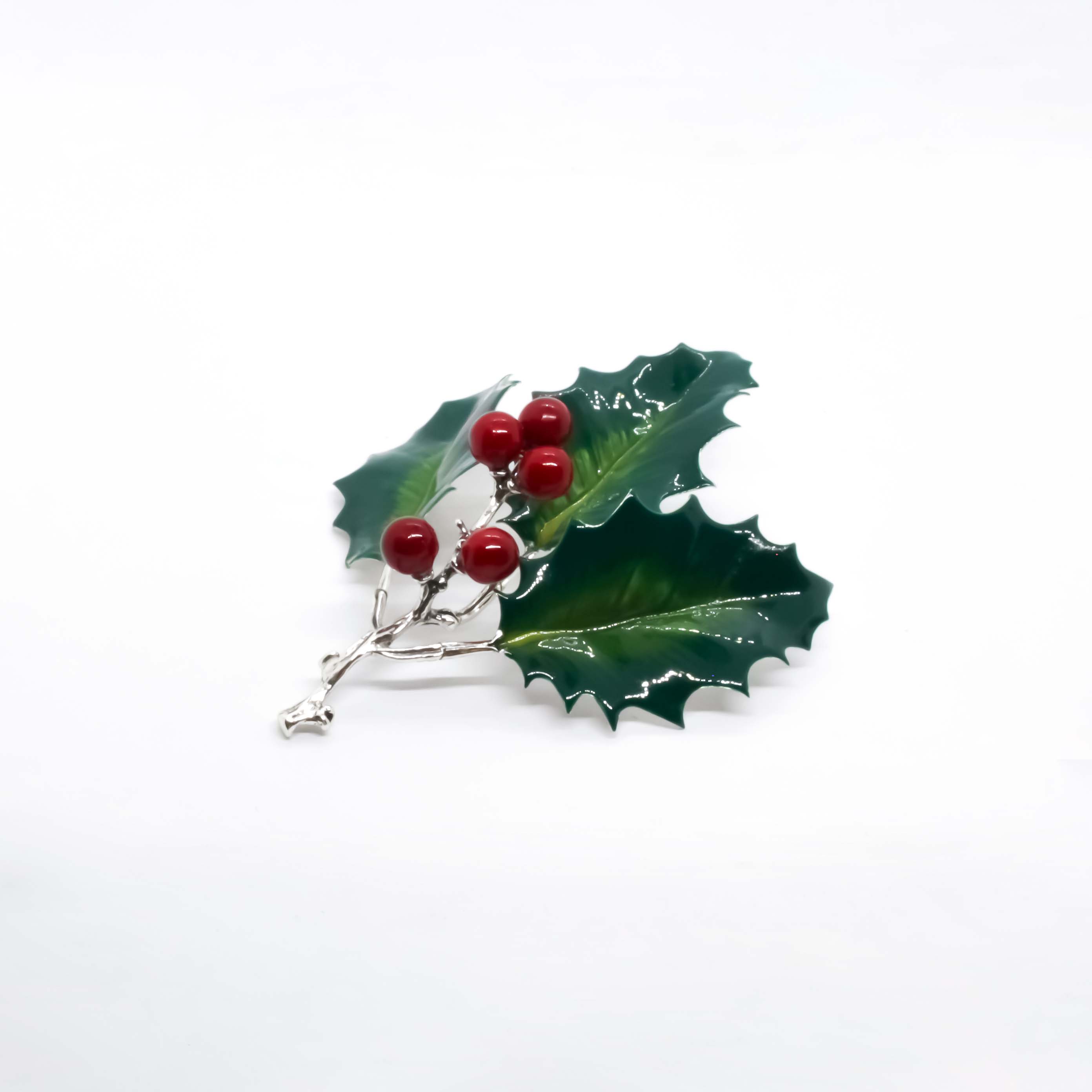 Celebra le festività con eleganza grazie a questo raffinato agrifoglio in argento smaltato, completamente Made in Italy. Realizzato con argento 925 di alta qualità e finemente smaltato a mano, ogni dettaglio delle foglie e delle bacche è curato con precisione, per un risultato luminoso e sofisticato.