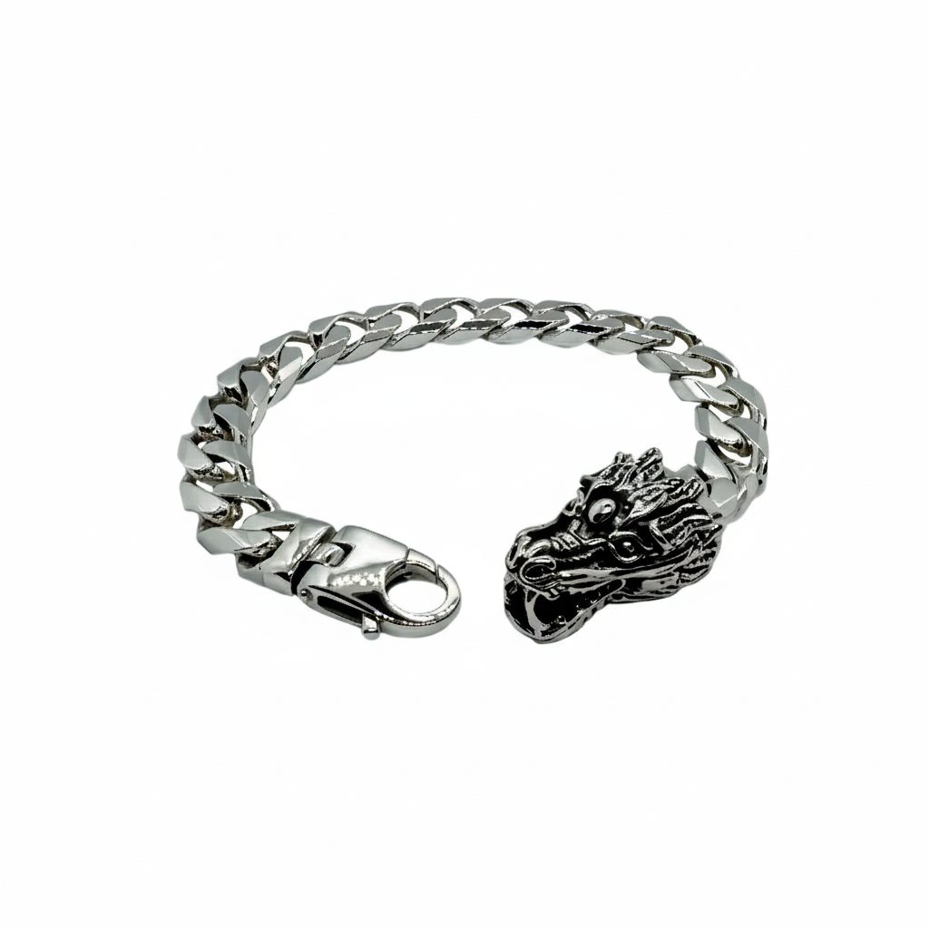 Bracciale Grumetta in argento 925. Questo gioiello è caratterizzato dalla chiusura a testa di Drago.